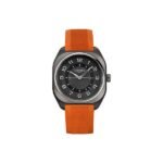 Black nickel-treated dial, black-gold treated circular satin-brushed minutes disk, grained center